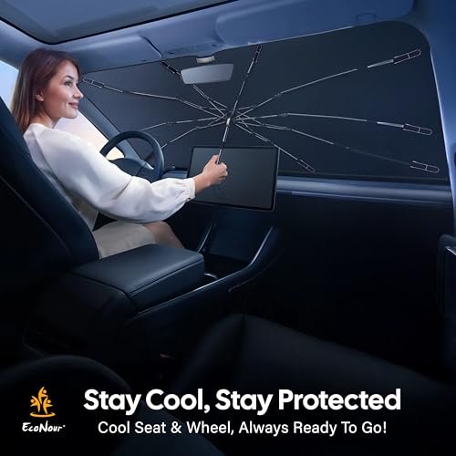 EcoNour Umbrella Windshield Sun Shade for Car | Foldable Umbrella Sun Shield | UV & Heat Protection for Front Window Shade with Storage Pouch | Fits Sedans Truck & SUVs | Medium 57″x 33″ Visit the EcoNour Store