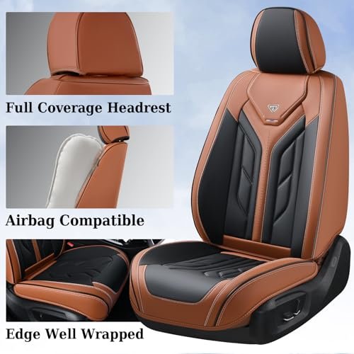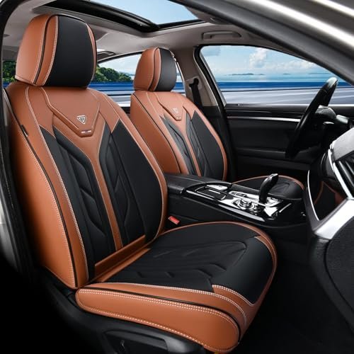 Coverado Seat Covers, Car Seat Covers Full Set, Leather Seat Covers for Cars, Automotive Seat Covers Car Seat Protector Car Accessories Fit for Most Sedans SUV Pick-up Truck(Black&Brown)