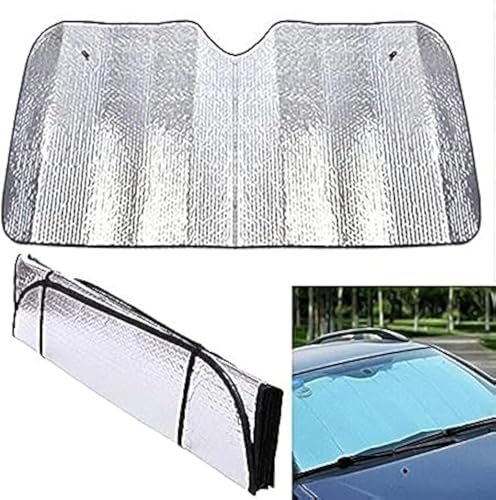2026 TrySpace Car Windshield Sun Shade Umbrella – [Silver Heat Shield & UV Reflective] Protector for Cars, Universal Fit Medium (56″x31″) | 25°F Cooler, Friendly Vinyl Coatings Medium