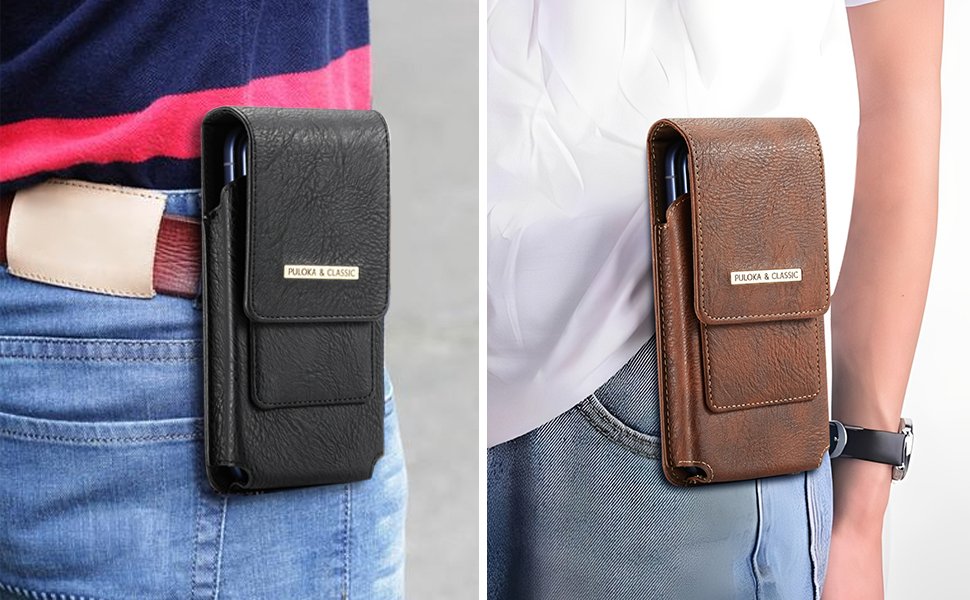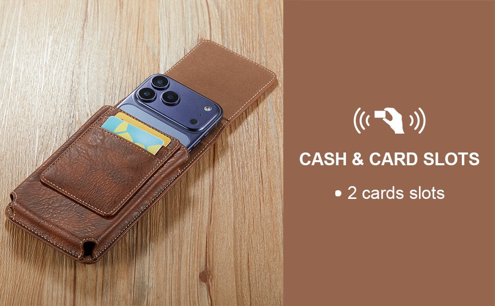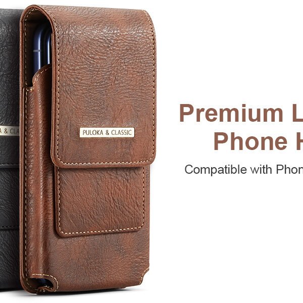 Phone Holster with Belt Clip for iPhone 17/16/15/14/13/12 Pro Max & Plus, Galaxy S25/S24/S23/S22 Ultra & Plus, Premium Leather Pouch with Card Holder, Magnetic Closure, Rugged Outdoor Case – L Brown