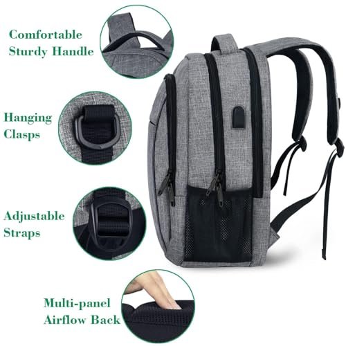 MATEIN Travel Laptop Backpack, Business Anti Theft Slim Sturdy Laptops Backpack with USB Charging Port, Water Resistant College School Computer Bag Gift for Men & Women Fits 15.6 Inch Notebook, Grey